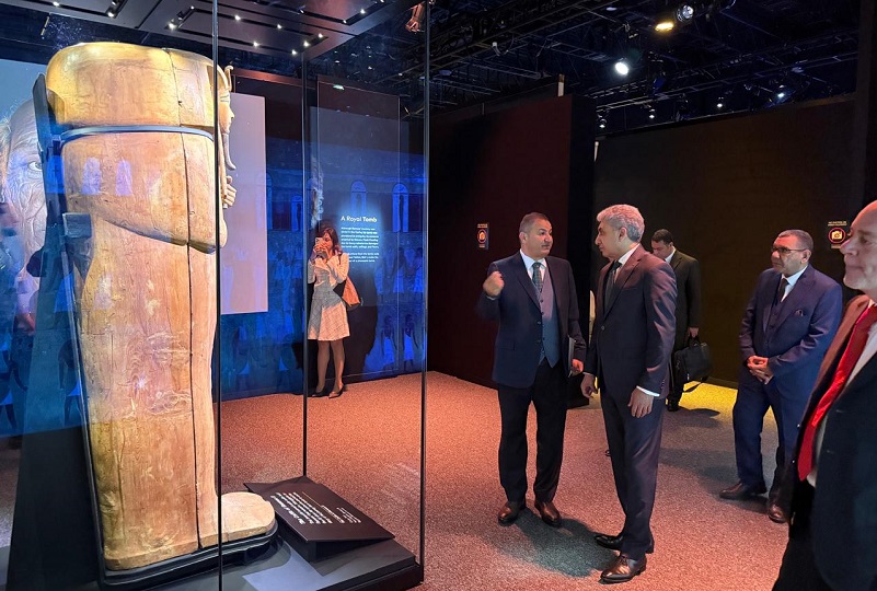 وزير السياحة والآثار يتفقد معرض "رمسيس وذهب الفراعنة" في لندن قبل افتتاحه الرسمي بساعات