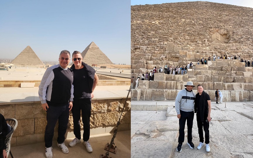 الفنان العالمي براين آدمز وأسرته يزورون أهرامات الجيزة بعد إحياء حفله بالمتحف المصري الكبير