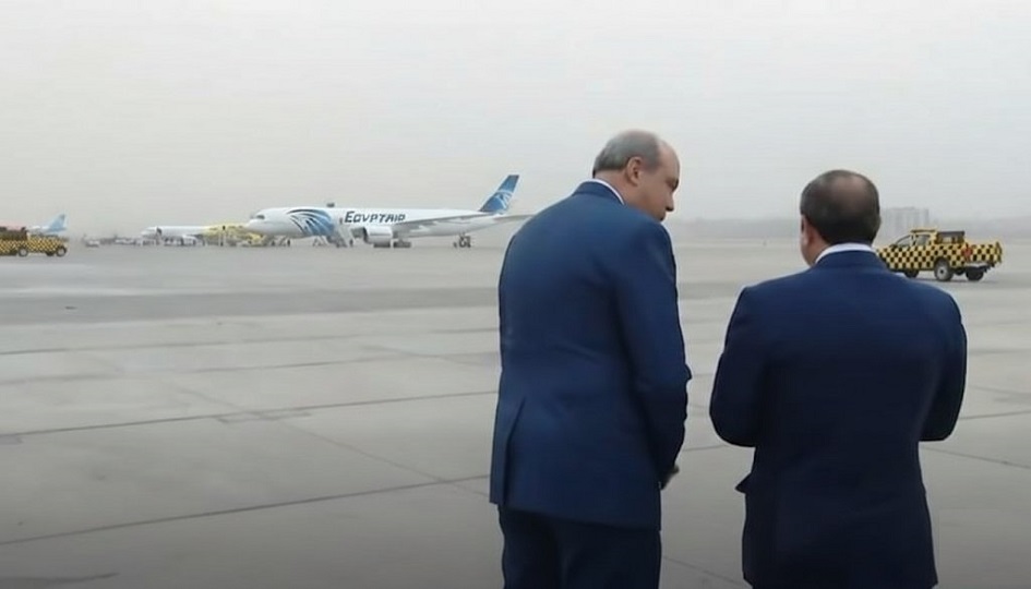 الرئيس السيسي يشاهد طائرة مصر للطيران الجديدة الإيرباص A350-900 عقب عودته من الإمارات